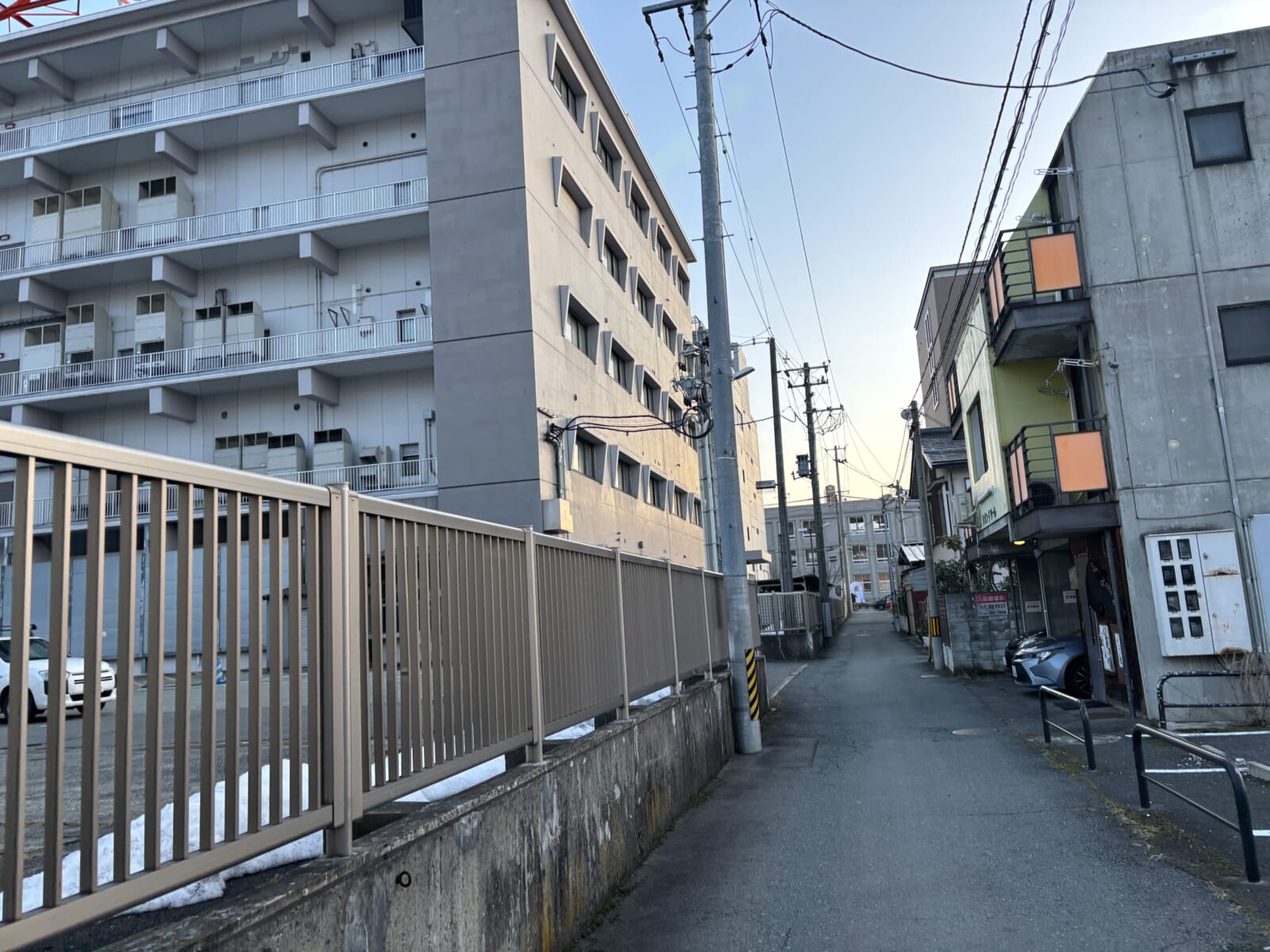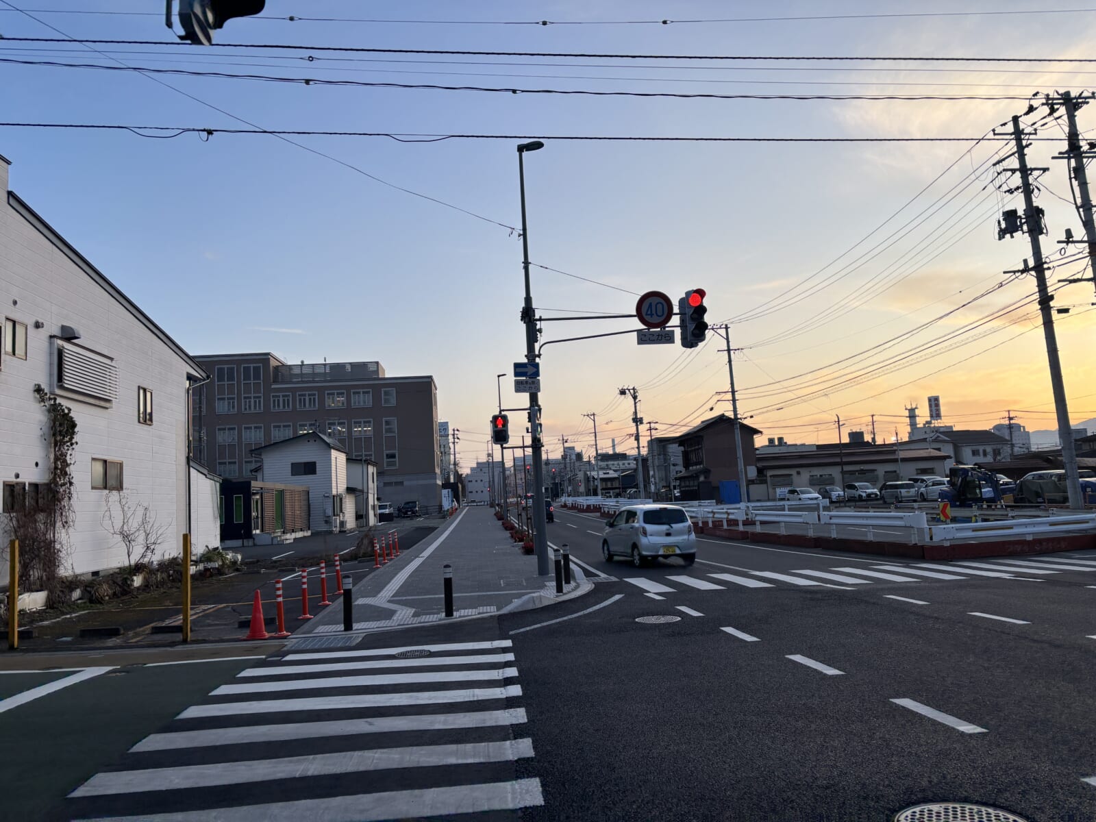 山形市七日町のまちなかの様子。Q1のそば、道路工事が終わった感じ。撮影は17日。バス停七日町でおりて、グランドホテルに向かっている。
