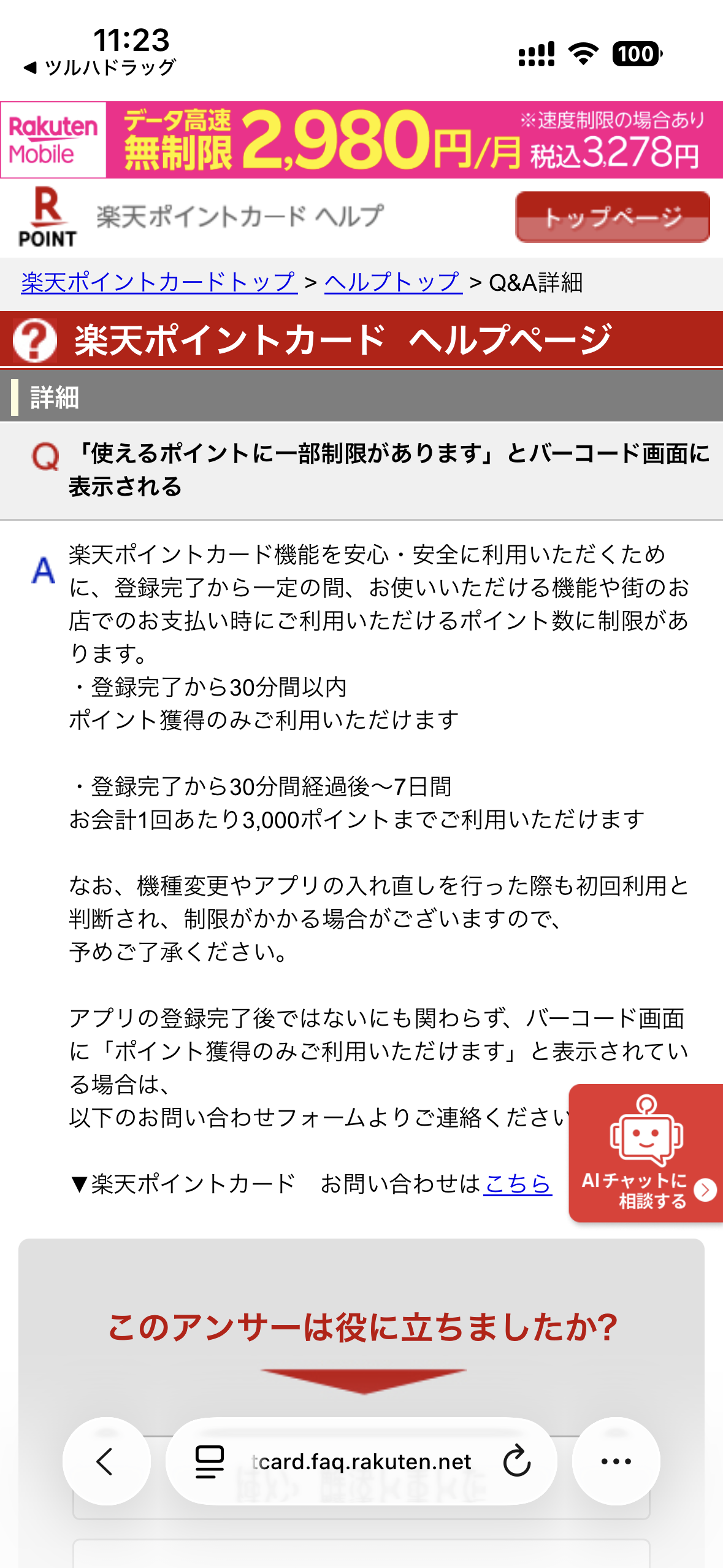 ツルハアプリから楽天ポイントのリンクがきれていて、ポイント使えなかった