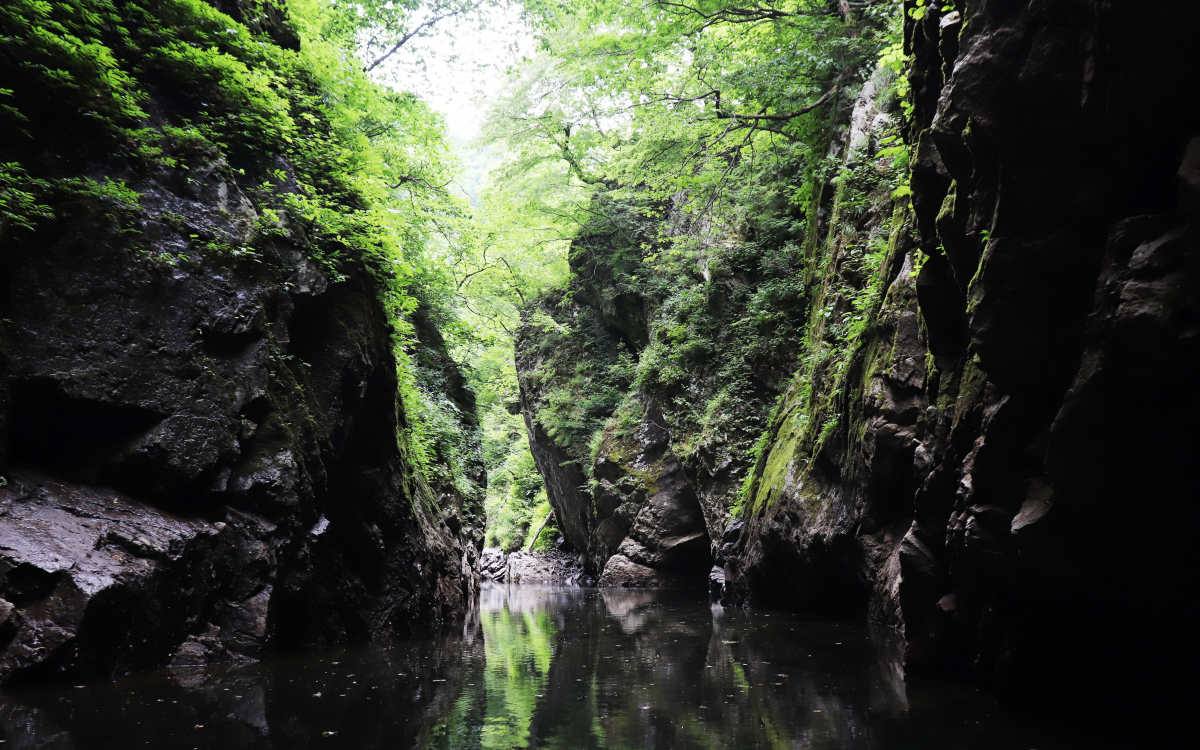 山形県長井市にある長井ダム湖(ながい百秋湖)には、高さ50mの断崖絶壁が200m以上も連なる秘境、三淵渓谷(みふちけいこく)があります。この渓谷へは、ながい百秋湖ボートツーリングを利用していくことができますが、なぜ見学ではなく、通り抜け参拝なのか?千年以上前の悲運の伝説を知れば、その謎が解けます。