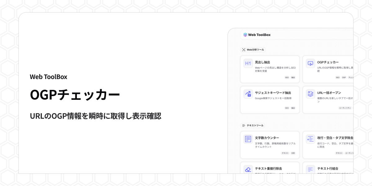 OGPチェッカー - X・Facebookシェア用画像確認ツール | Web ToolBox